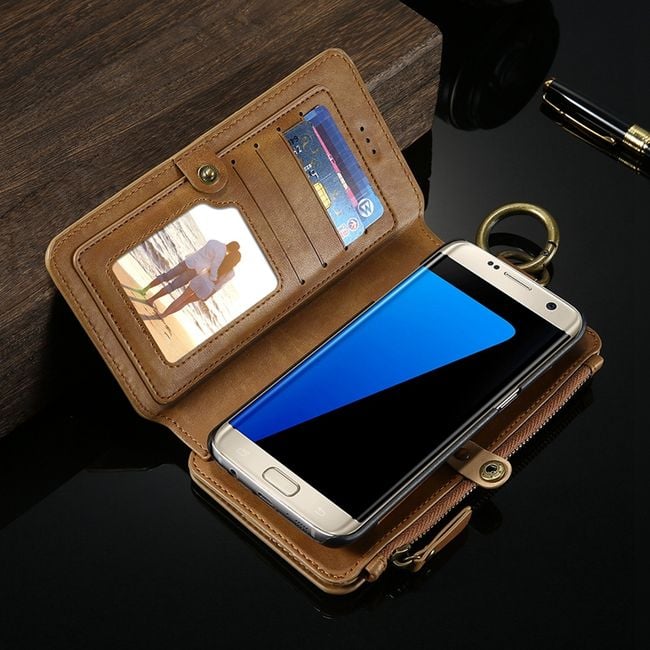 The case designed for the Samsung Galaxy S7 protects the phone from damage. It includes a wallet that can hold documents, payment cards, and cash. This practical accessory is ideal for everyday use. Available in 6 colours.