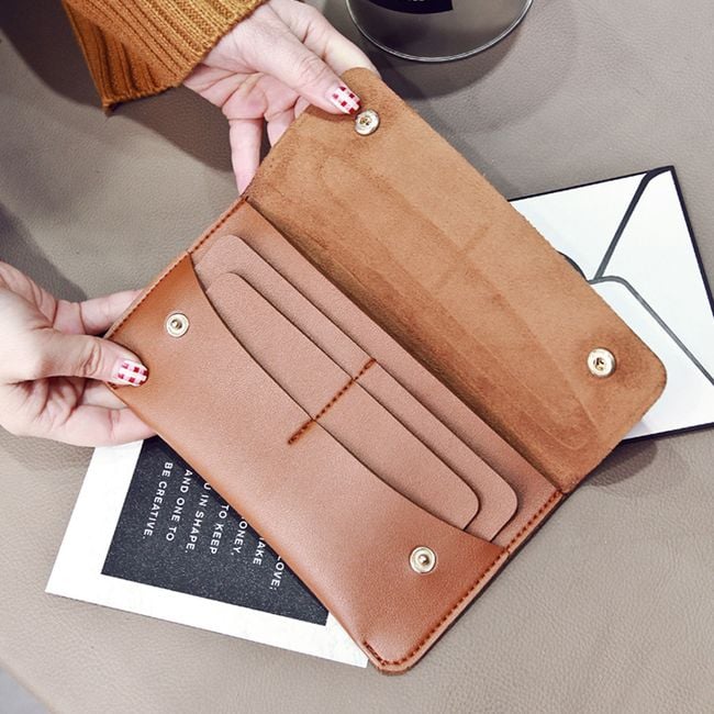 Elegant single-colour wallet designed for cards and banknotes. Its slimness allows it to fit into any handbag, making it ideal not only for travel but also for everyday use. It fastens with snaps and you can choose from 9 different colours!