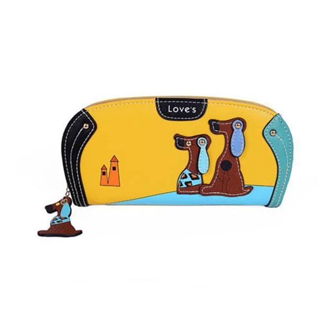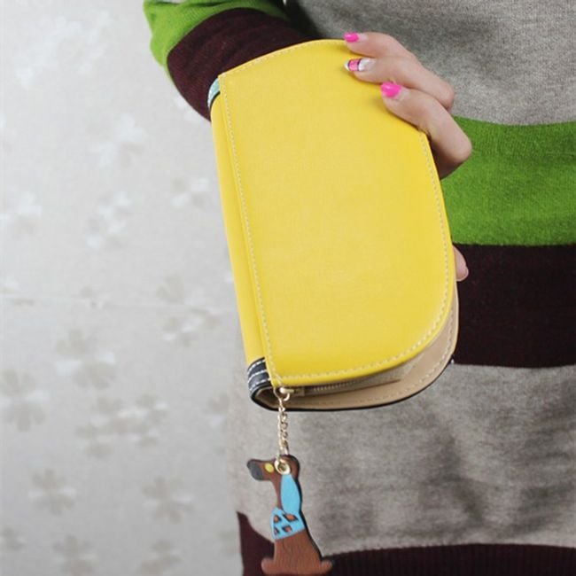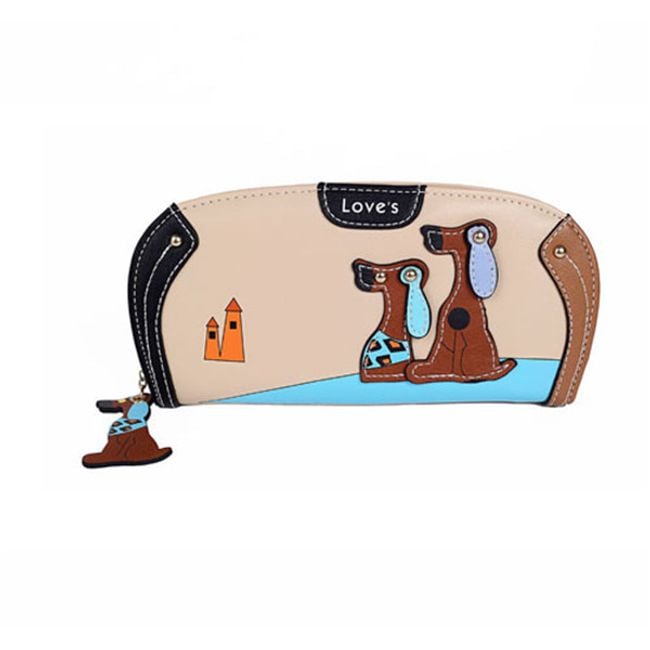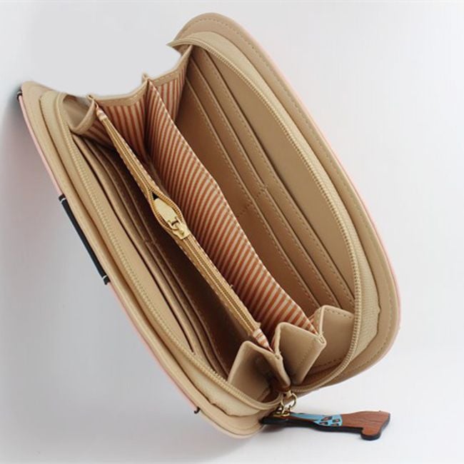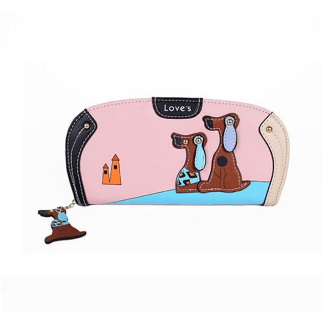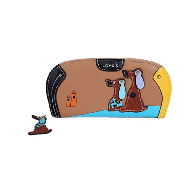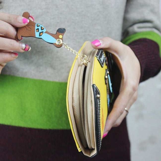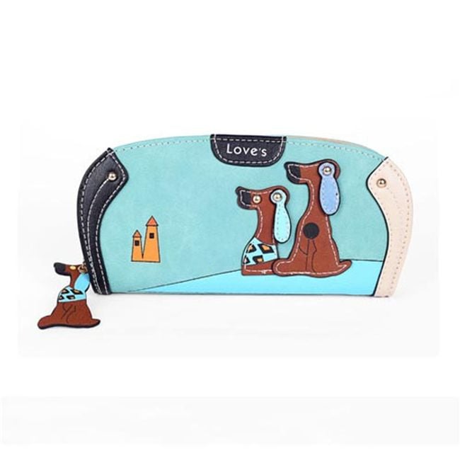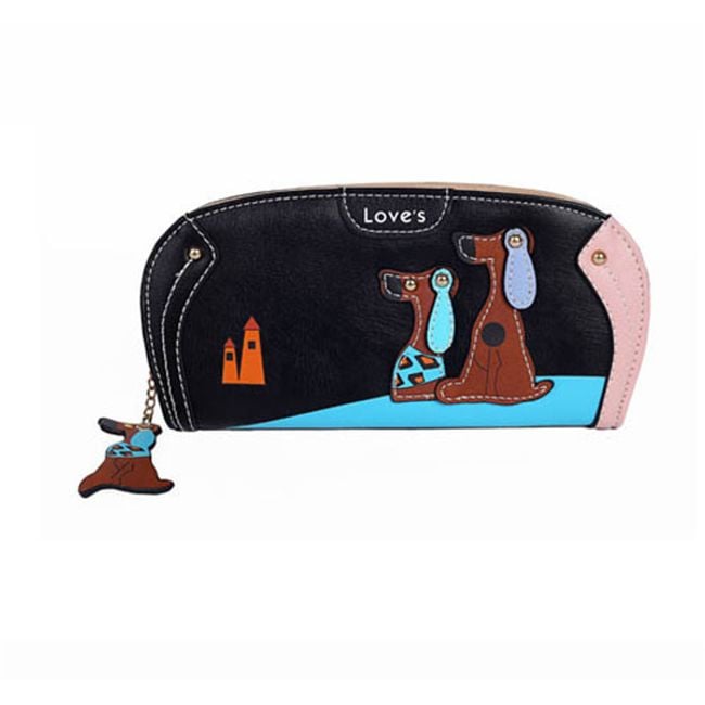 This wallet is a stylish fashion accessory. It has slots for cards and paper money, as well as a zip pocket for coins. The wallet is sure to delight all dog lovers.