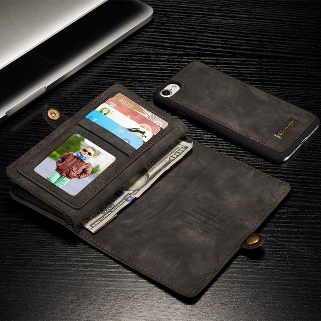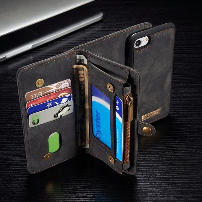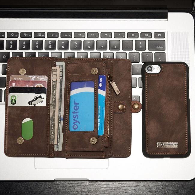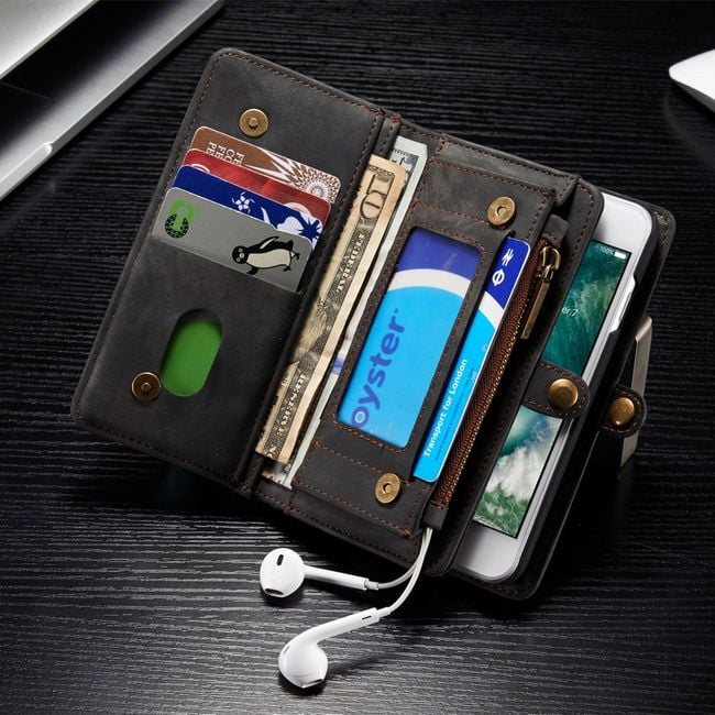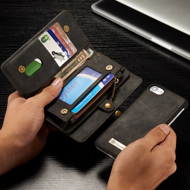 The retro-style wallet has plenty of slots for payment cards and, of course, space for cash. But that's not all – it also serves as a detachable magnetic case for the iPhone 7 Plus. You can choose from several stylish colour options.