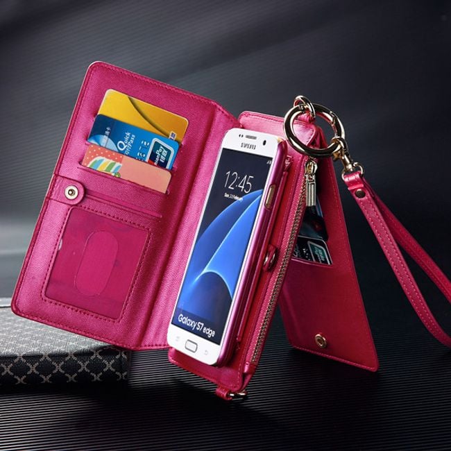 Multi-functional wallet that also includes a case for the Samsung Galaxy S7 Edge. When the strap is attached, the wallet can be carried as a handbag or it can be clipped to trousers using the ring. Inside the wallet, you will find card slots and a cash pocket with a zip closure. Available in four colours.