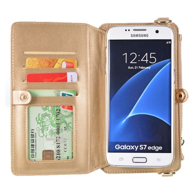 Wallet with case for Samsung Galaxy S7 Edge with strap