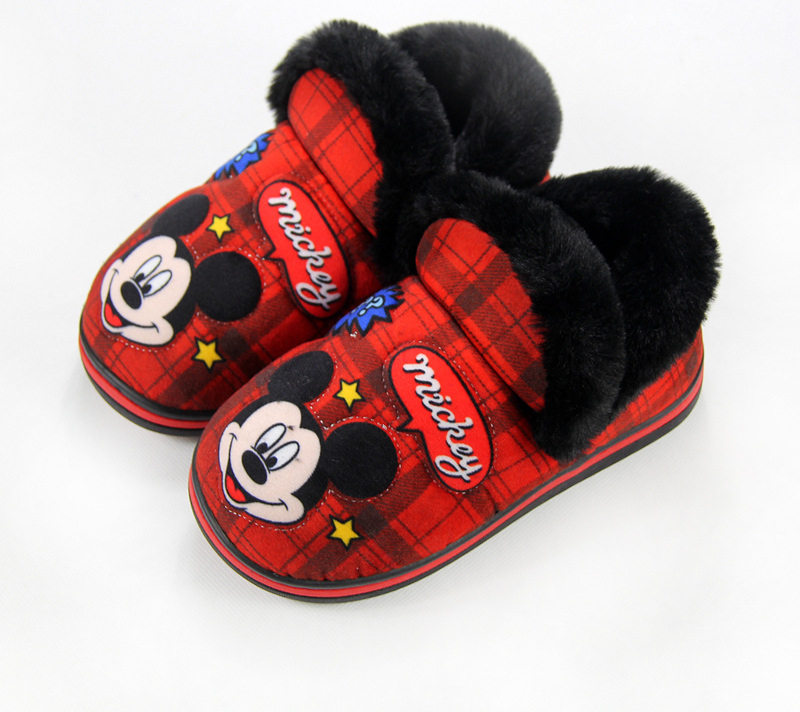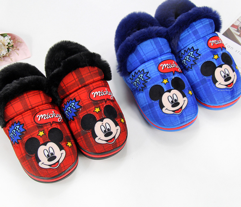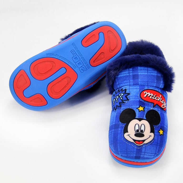 Autumn/winter warm Disney children's slippers – Mickey Mouse in red and blue.