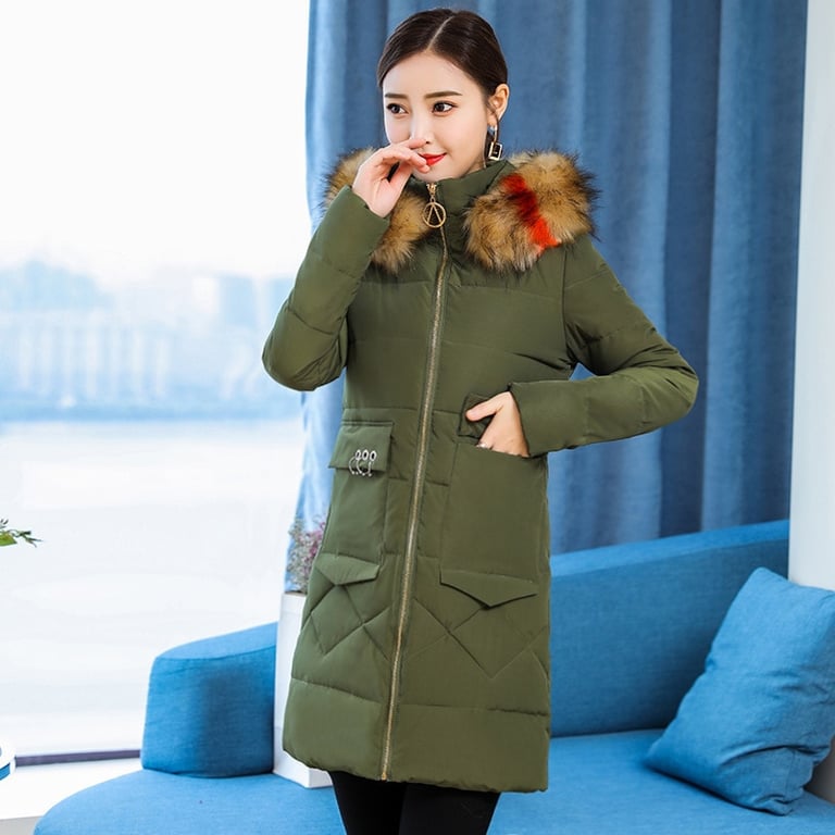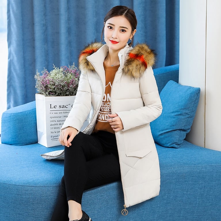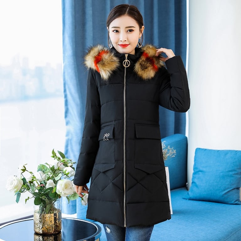 Warm Ellesha coat with hood and colourful fur.