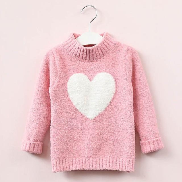 Girls' children's sweater with a heart motif. Available in various colours.