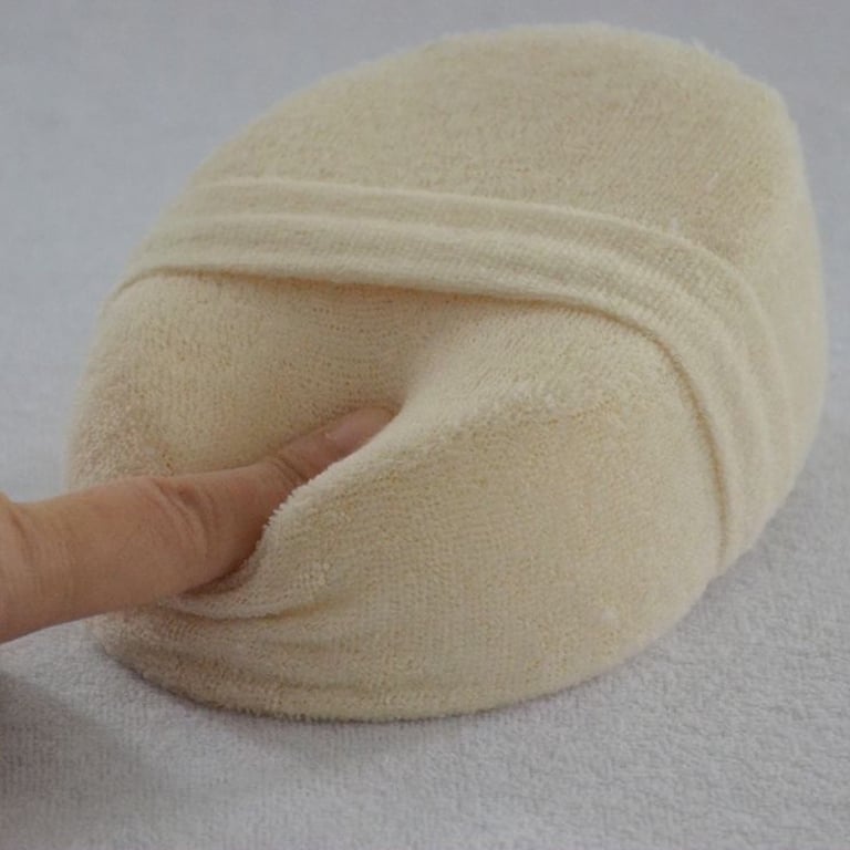 With a grip for the palm. Effectively removes dead skin cells and leaves the skin soft.
