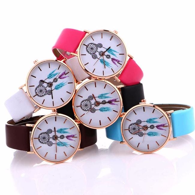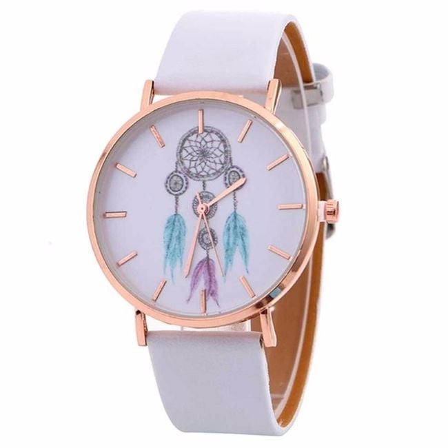 The ladies' wristwatch features a dreamcatcher design on the dial. You can choose the strap colour from four options.