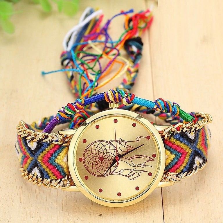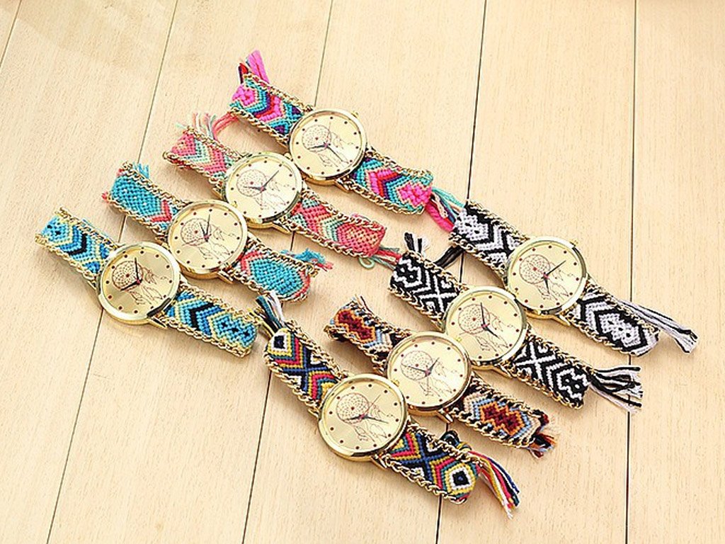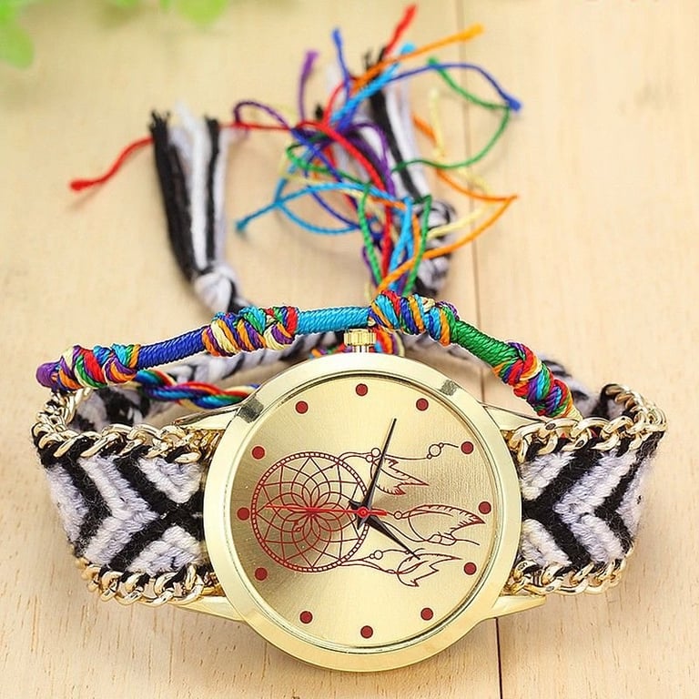 Elegant women's watch with a woven strap and a dreamcatcher on the dial. 8 multicoloured options to choose from.