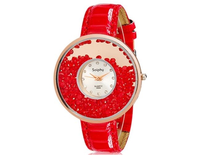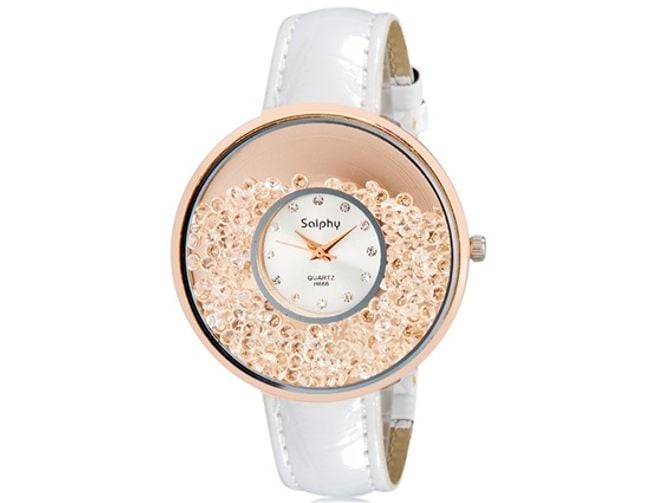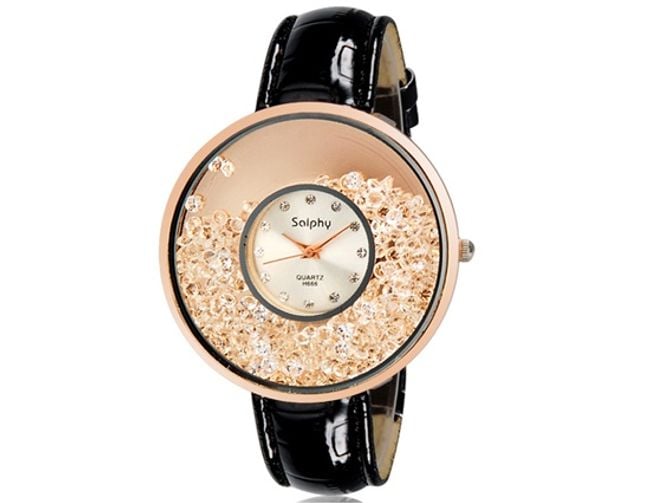 Extraordinary women's watch made up of two parts. One features freely moving stones and the other shows the time. Choose from three colour combinations.