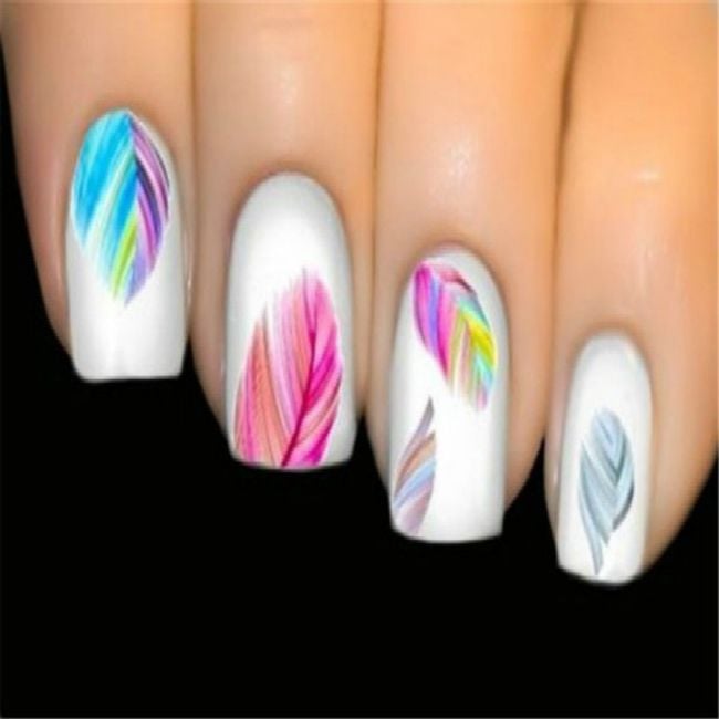 Water decals look like feathers and are suitable for nails.