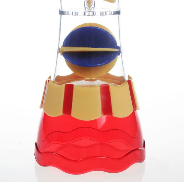 We fill the top part of the hourglass with running water. Inside the hourglass, there is a propeller and a spiral through which the water will flow.