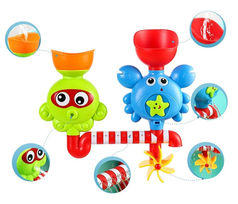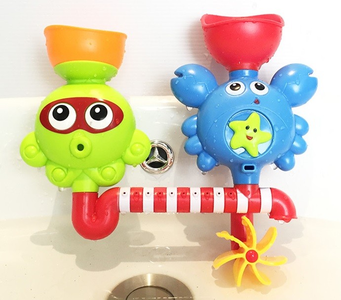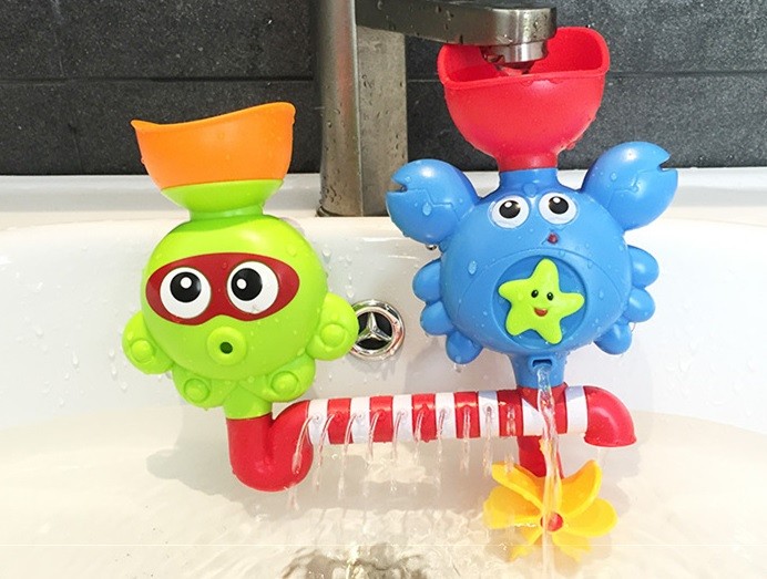 Make evening baths more fun with colourful tubing that can be secured to the smooth surface of the bath using two suction cups.