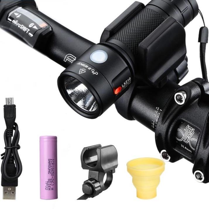 Waterproof bike light. LED front light specifically designed for cycling. It has 4 speed settings.