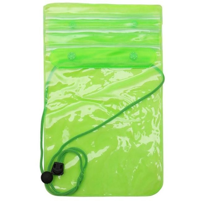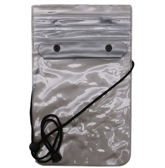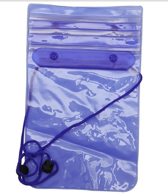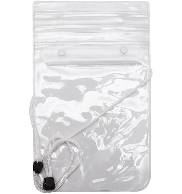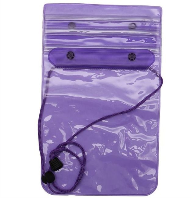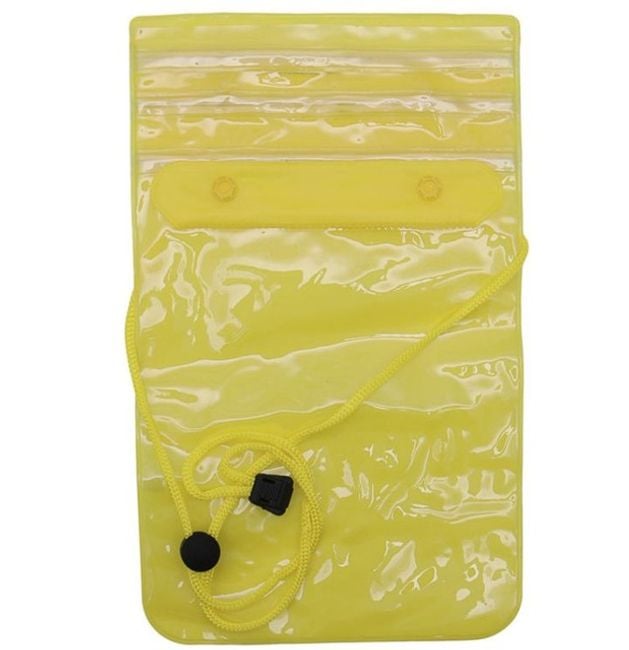 Waterproof case with a strap keeps your mobile phone dry.