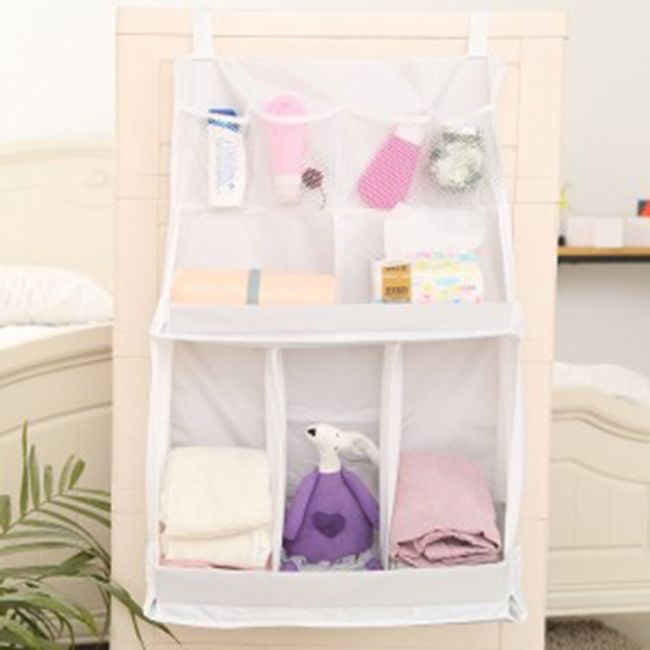 This large hanging bag is designed specifically for children or for use in the bathroom. It has two hanging straps that make it easy to hang, for example, on the edge of a cot. Thanks to the waterproof nylon, you can also place it in the bathroom. There are two variants to choose from – A and B, with their dimensions provided further in the description.
