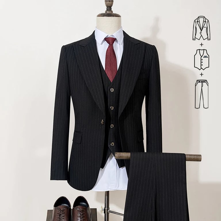 The set includes a jacket, waistcoat and trousers.