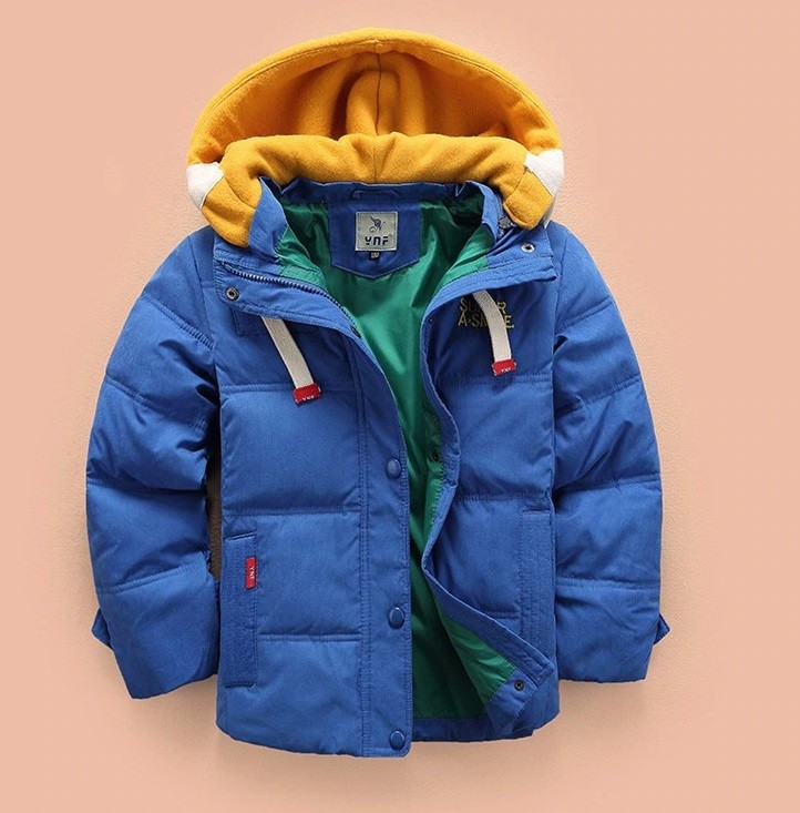 The boys' winter padded jacket is the perfect choice for winter. This jacket filled with duck down will surely keep your little rascal warm.
