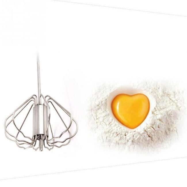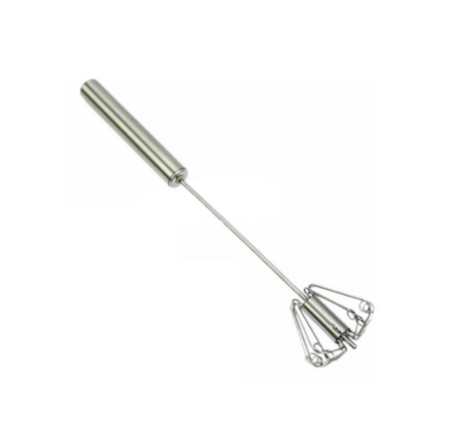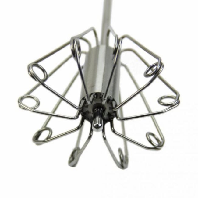 The whisk is made of stainless steel and is suitable for manual whisking of eggs, batter, etc.