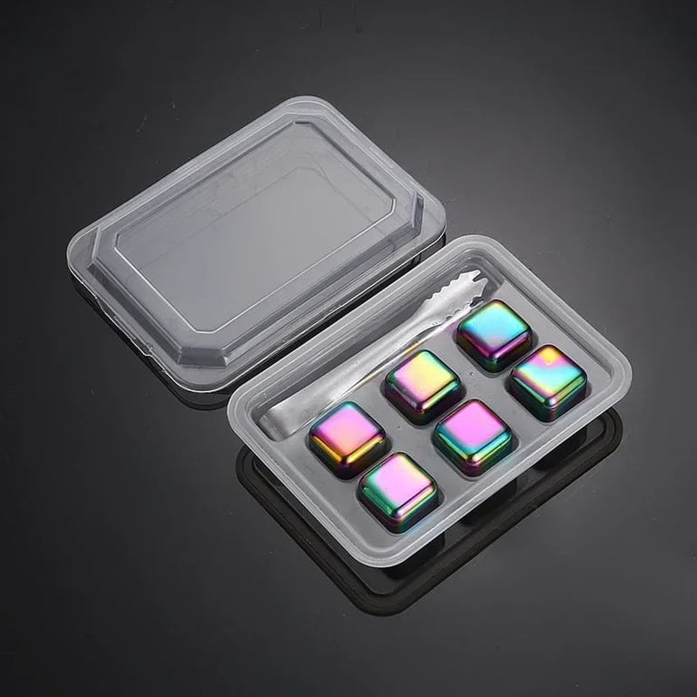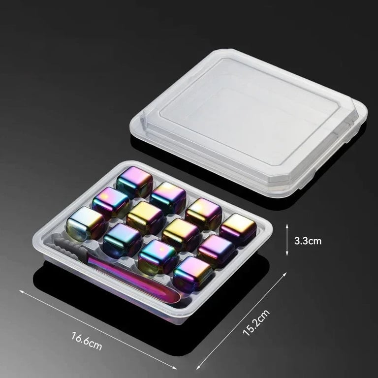 Reusable stainless steel chilling stones. Perfect for whisky, bourbon, rum, or stylish serving of drinks without diluting with water. Just put them in the freezer for a few hours and then enjoy.
