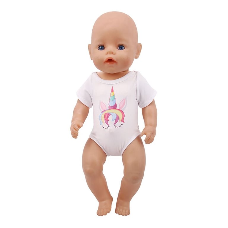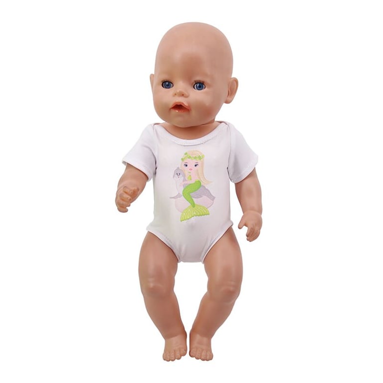 White outfit for dolls with print