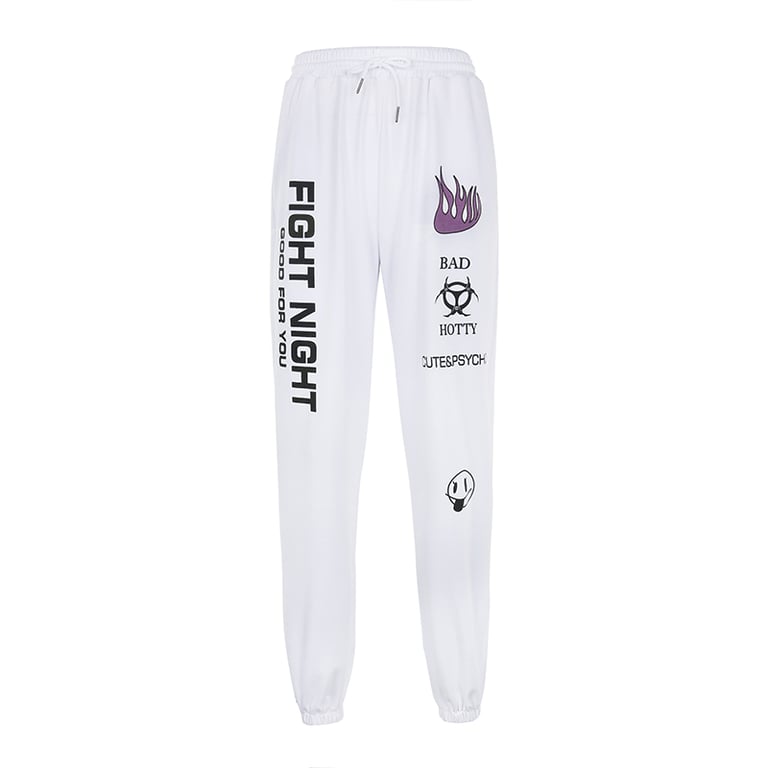 White printed women's jogger trousers