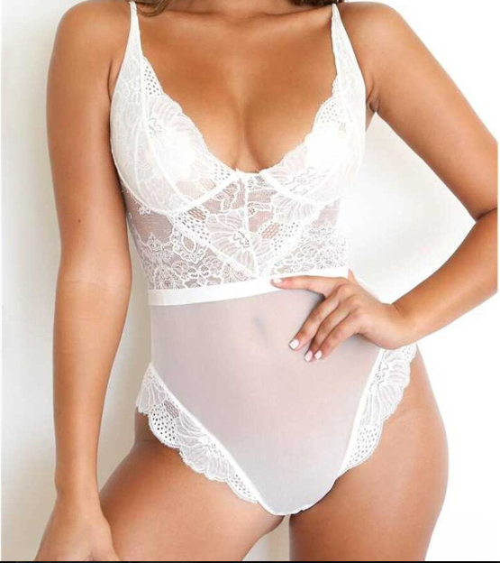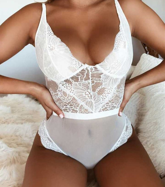 White sexy seductive lace women's bodysuit for the night