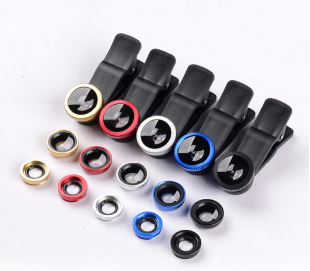 Wide-angle lens for mobile phone camera – available in multiple colours.