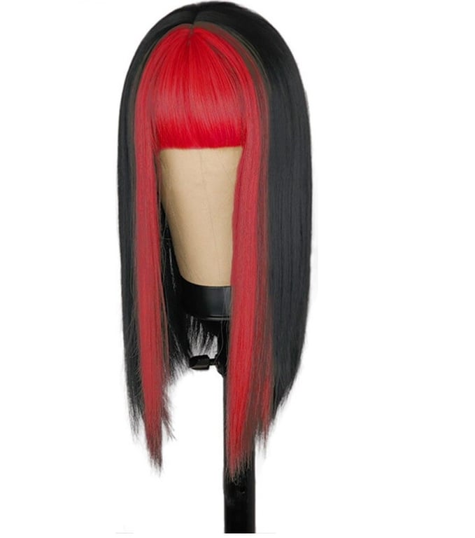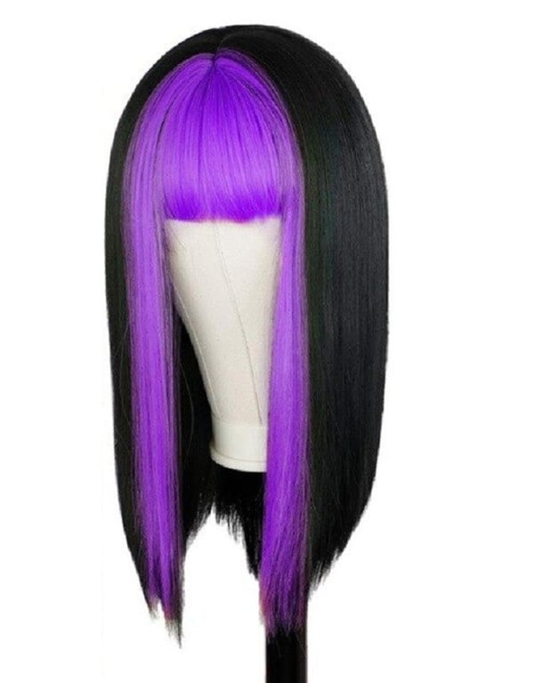 Made from very high-quality synthetic fibres. Resistant to damage and burning. Can be washed with shampoo and styled with hairspray. The wig with coloured fringe is a perfect accessory for parties. Comfortable even for longer wear. Available in several colours.