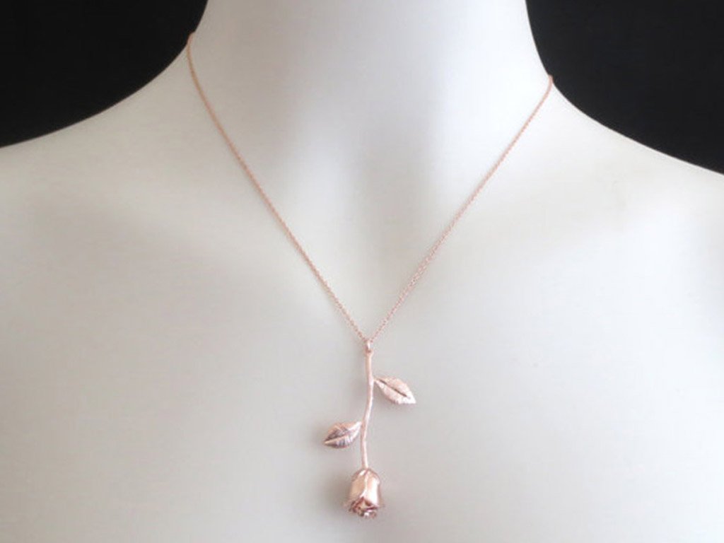 Silver, gold or rose gold necklace with a wild rose pendant. The intricately crafted pendant is a beautiful gift for lovers of romance. A lovely gift for your beloved partner!