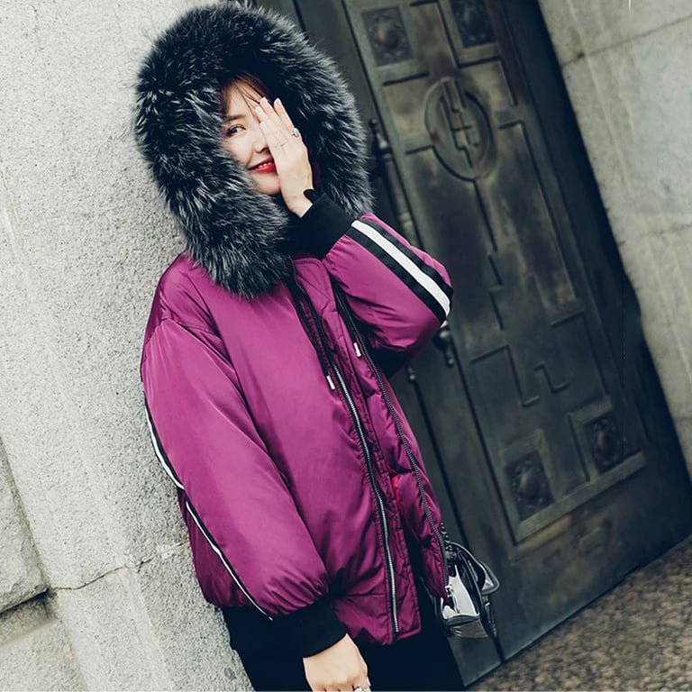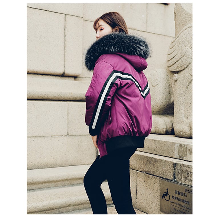 In winter, in style, only in our super bomber jacket. The attractive stripe on the back will catch the eye, while the furry collar will keep you warm and pleased in bad weather.