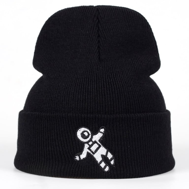 Winter Black Beanie with Astronaut