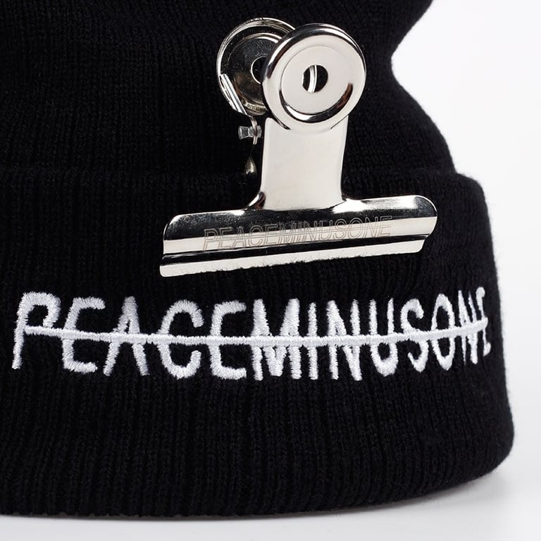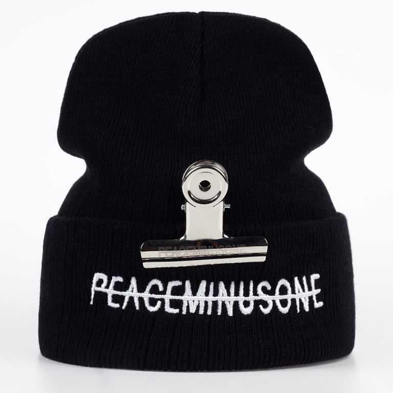 Winter beanie with text on the front.