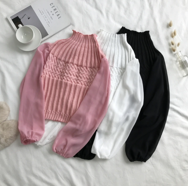 Winter knitted unique women's sweater with larger sleeves