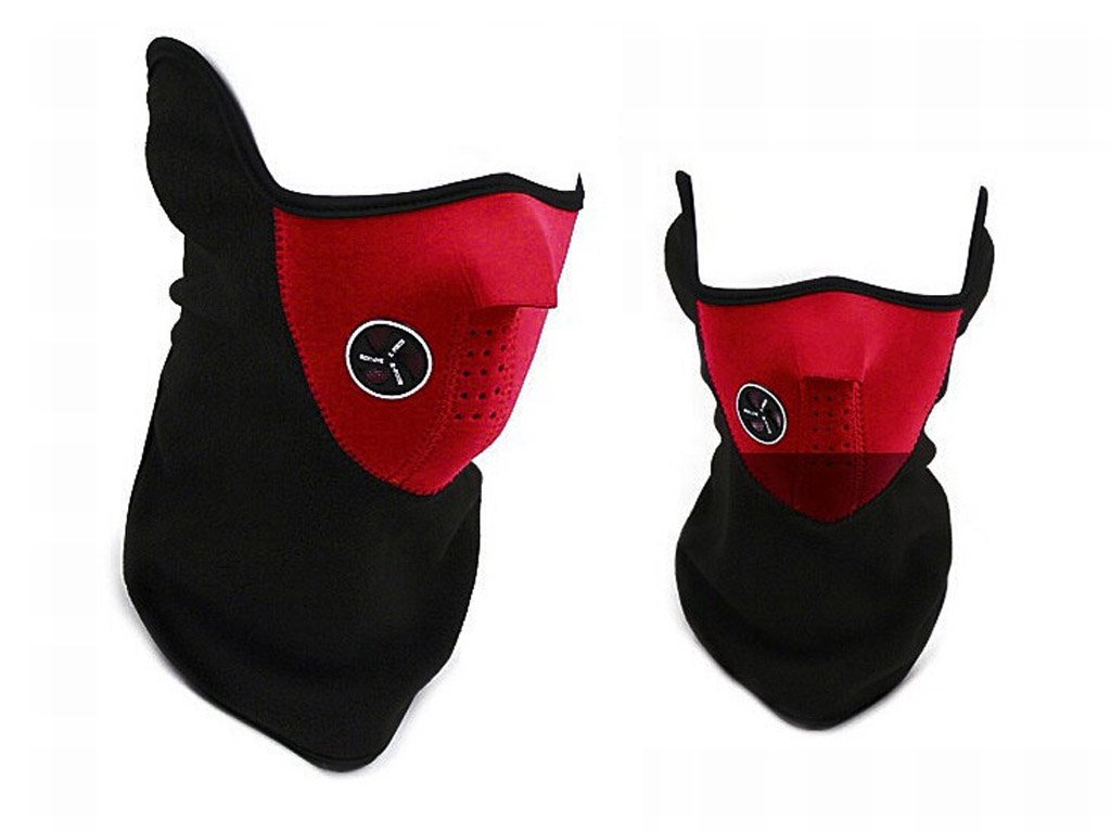 A mask that protects against wind and frost in an original design. An ideal accessory for skiers and snowboarders. Available in various colours: red, blue, and black.