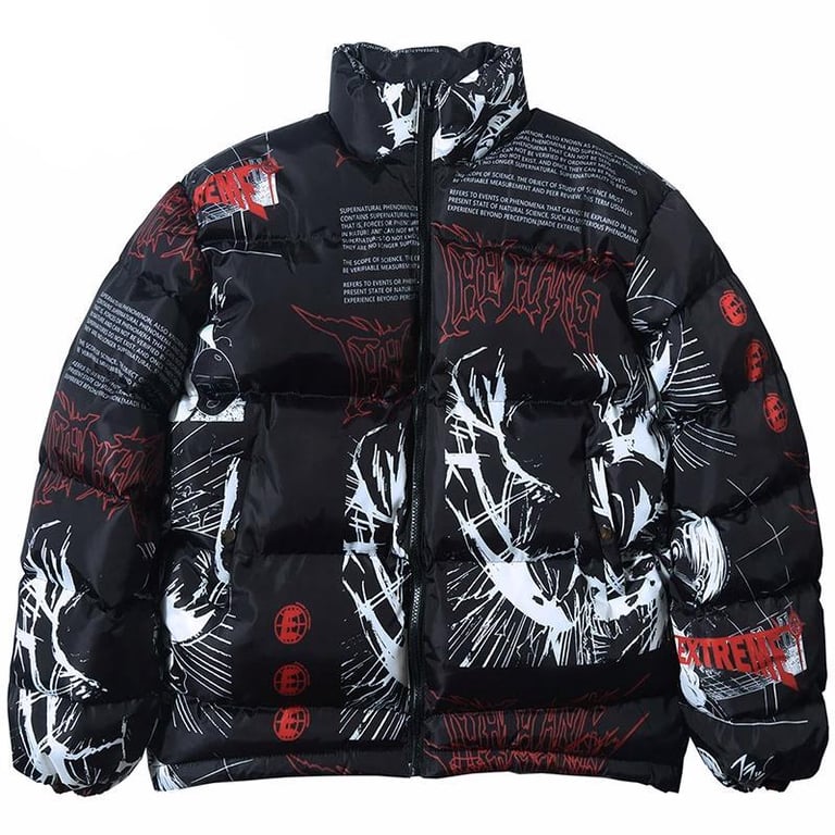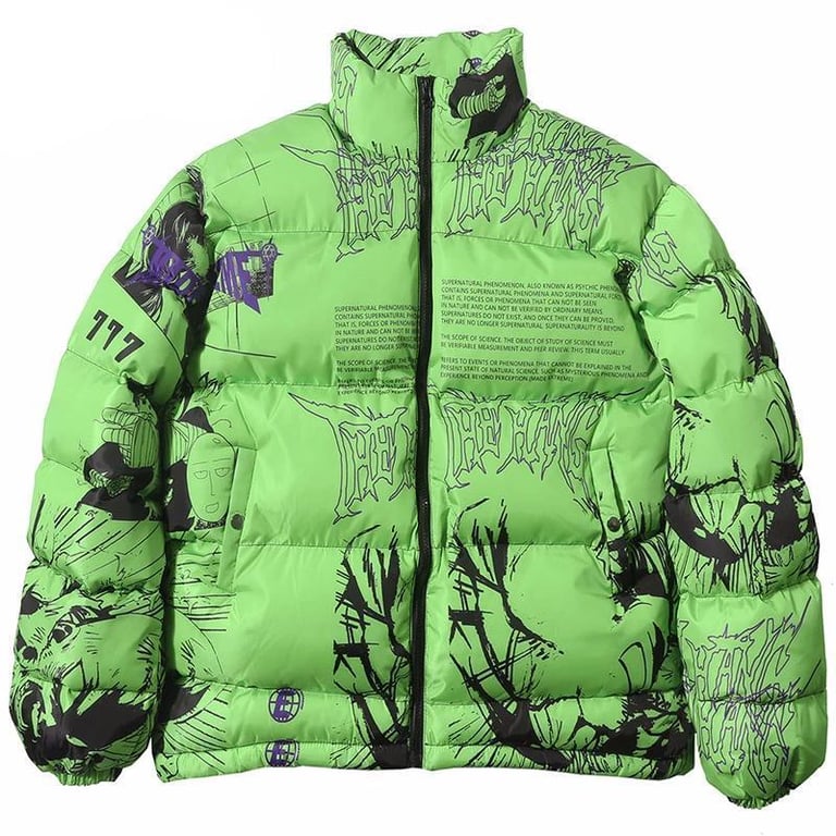 A warming fashion jacket with a loose fit, suitable for very cold weather. The jacket is horizontally quilted.