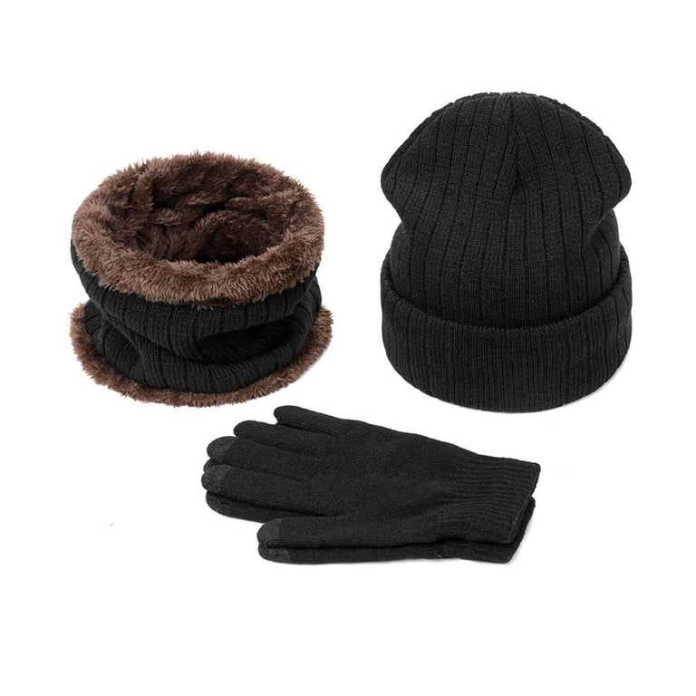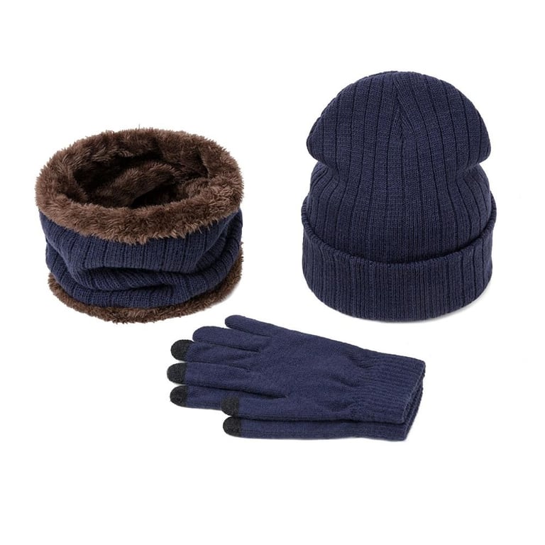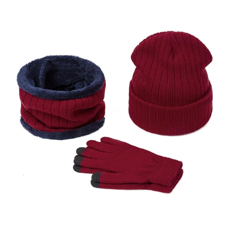 Touchscreen gloves. The neck warmer and hat are lined with fleece.