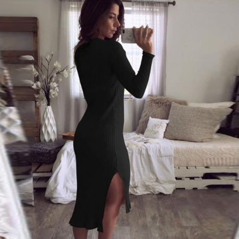 If you are looking for warm dresses for winter, this is the right choice. Thanks to its slit, it is also quite sexy.