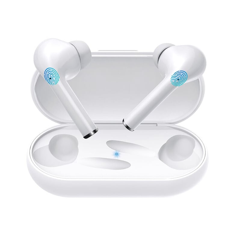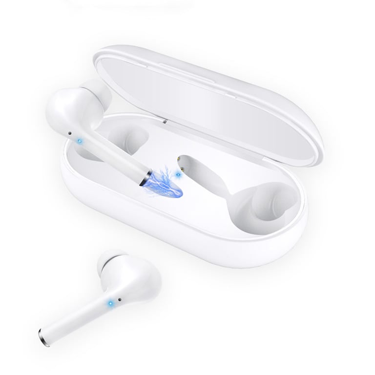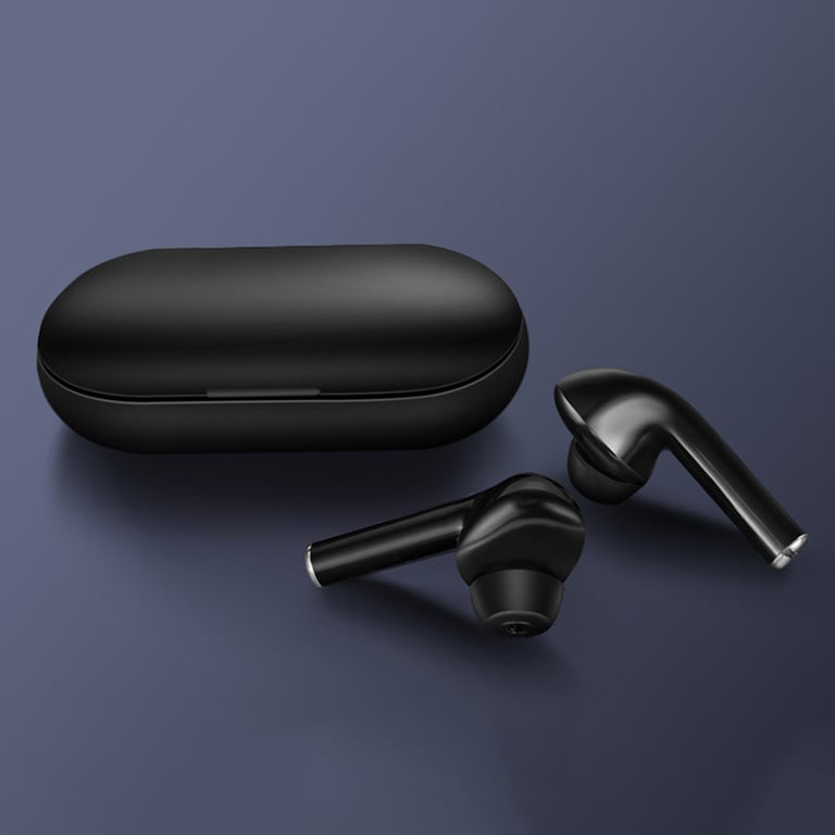 In the stylish case, you will find two wireless headphones with earbud tips for different ear sizes.