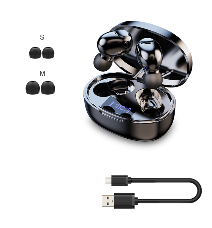 • Package contents: 1 set (1 * pair of headphones, 1 * charging box, 1 * USB cable, 2 * pairs of replacement ear tips)