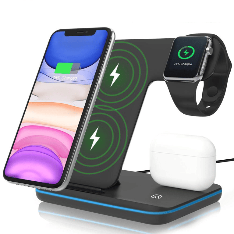 • Wireless charger for iPhone, watch and headphones3-in-1 charges up to 3 devices simultaneously.