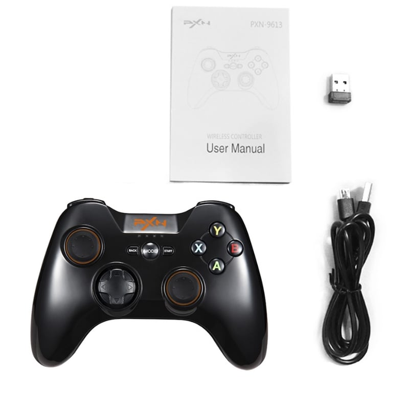 Package Contents: 1x wireless controller, 1x USB cable, 1x regulator, 1x user manual