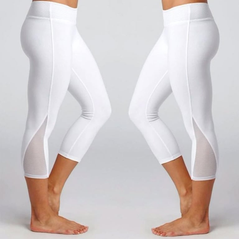 Women's sports leggings with an elastic waistband and 3/4 length legs featuring a transparent detail. Available in two colours.