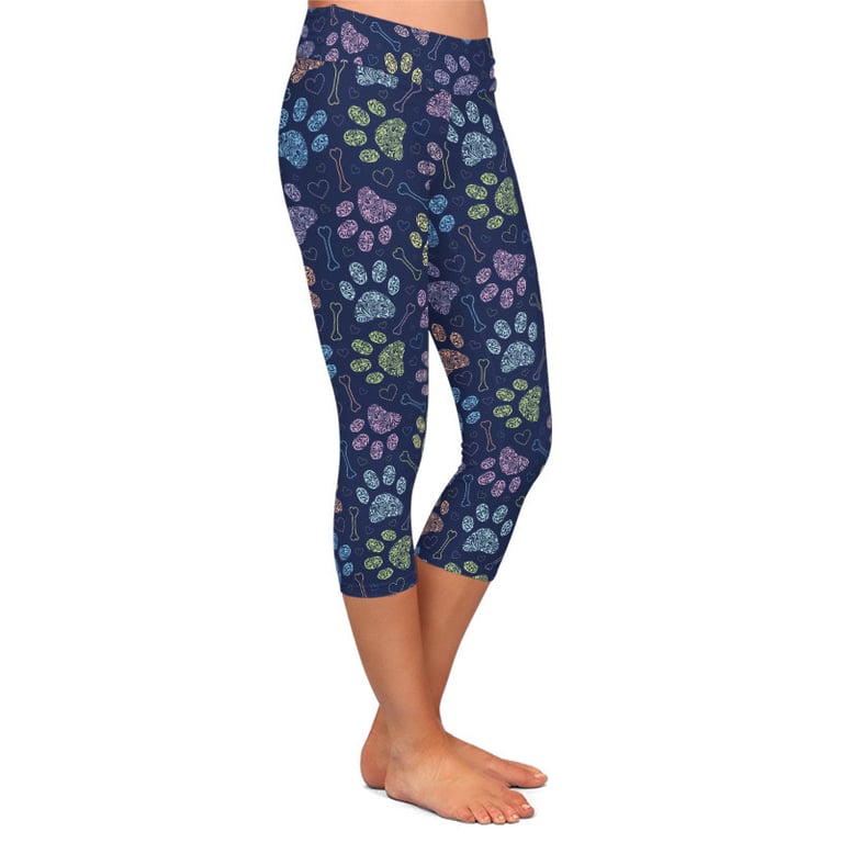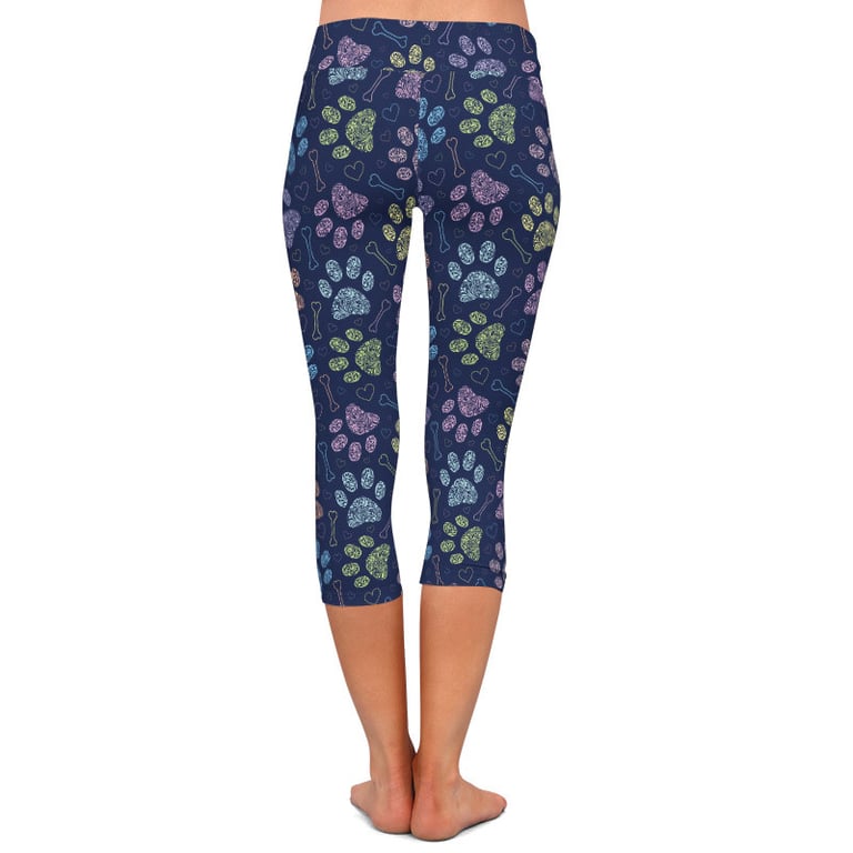 Women's leggings with an elastic waistband. 3/4 length trousers. Colourful all-over print.