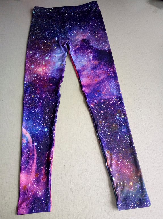 These women's galaxy print leggings are suitable for yoga, sports, or leisure.