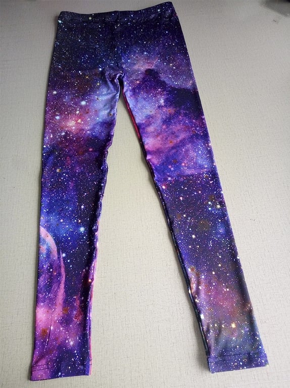 These women's galaxy print leggings are suitable for yoga, sports, or leisure.