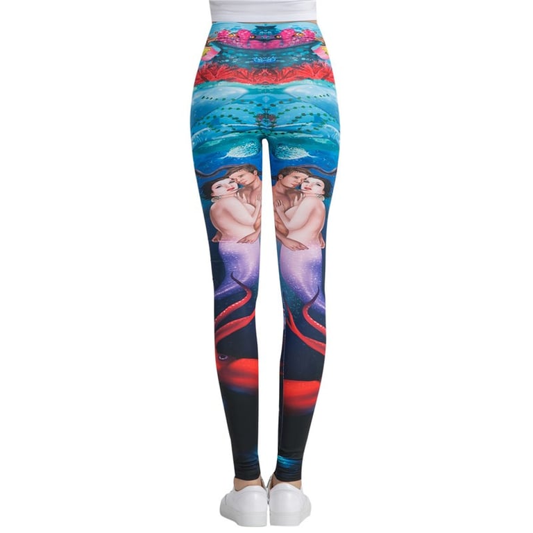 The leggings feature various fish and octopuses, while on the other side there is a mermaid.