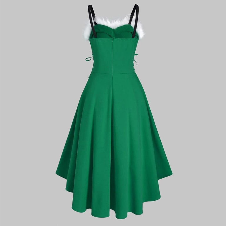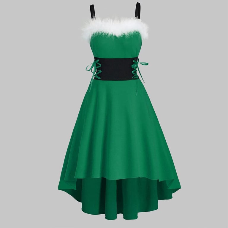Women's A-line Christmas dress with a drawstring waist in an asymmetrical cut