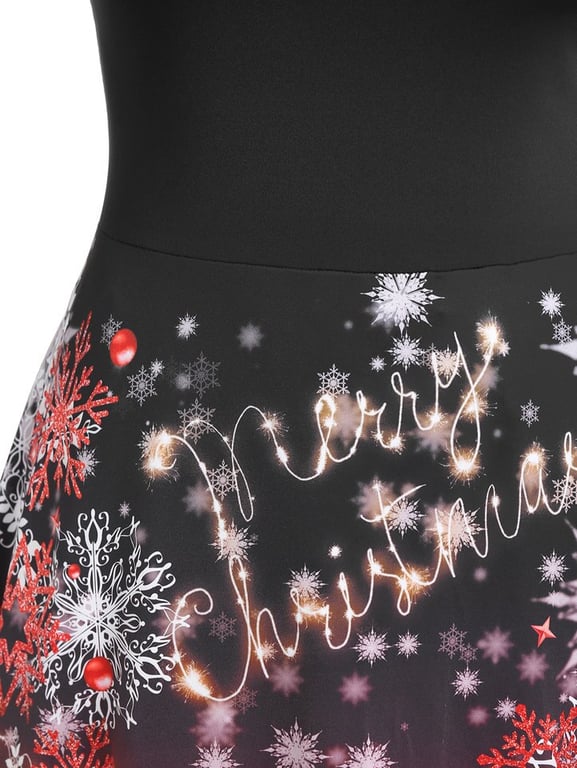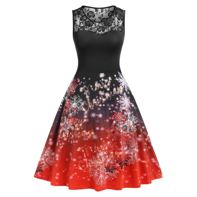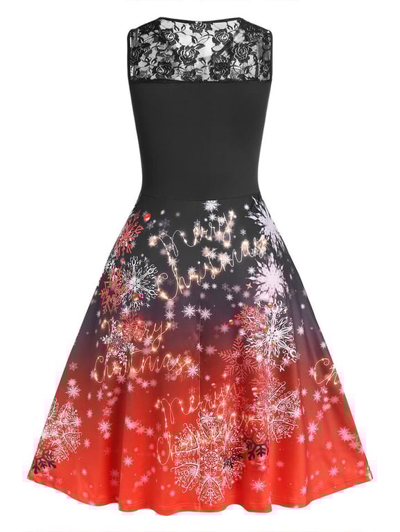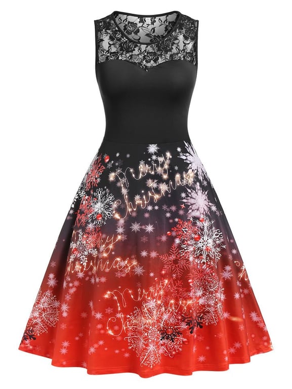 Women's A-line dress with lace neckline and Christmas motif