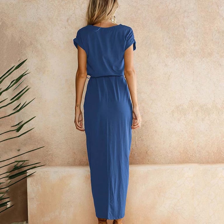 Women's long dress with a slit.