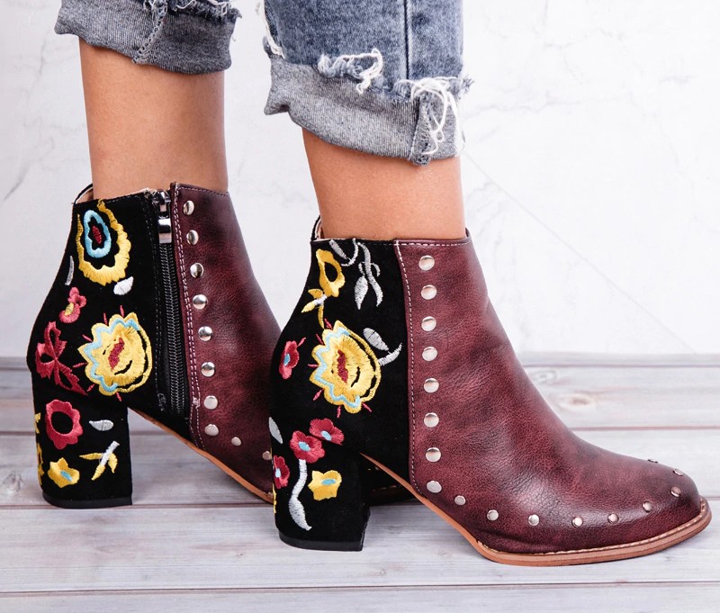 You will fall in love with the Bianca ladies' ankle boots with heels and embroidered flowers. The shoes are made from luxurious material.